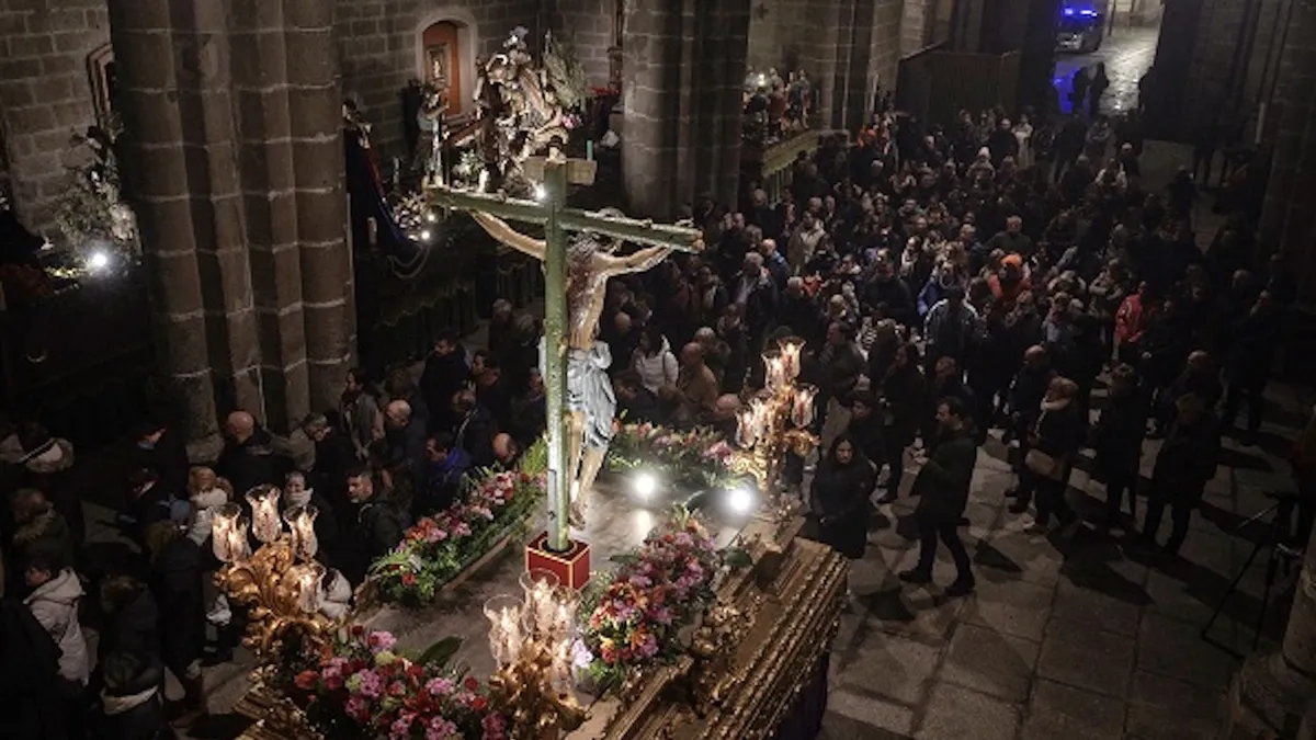 Una de las tallas que tenía que haber salido el Jueves es una de las más veneradas y simbólicas de la Semana Santa de Ávila, que ha presidido el Vía Crucis desde el trascoro de la Catedral: el Santísimo Cristo de los Ajusticiados, una talla del siglo XVI.