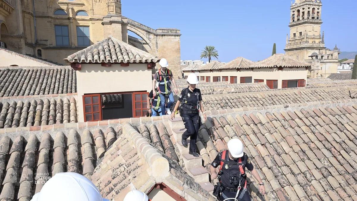 Técnicos inspeccionan la techumbre de la mezquita de Córdoba