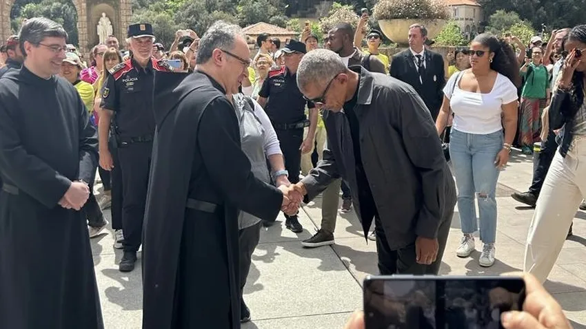 Visita exprés de Obama y Spielberg a la abadía de Montserrat