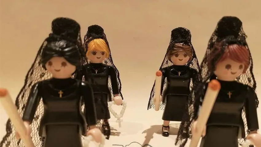 Una de las opciones más recurrentes es recrear las procesiones desde el hogar pero con los famosos clicks de Playmobil. Incluso hay una empresa que los comercializa, Play Capillita, totalmente ataviados y atrezados para la época.