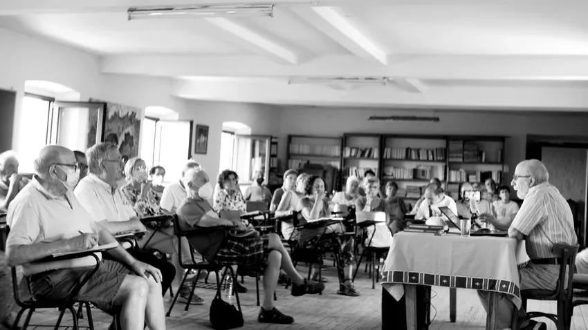 Las cincuenta personas asistentes al curso, en el paraje maravilloso del Santuario de Montesclaros, en las montañas agrestes del sur de Cantabria, hemos dialogado después de las sugerentes exposiciones de Jesús Martínez Gordo, Montse Escribano, José María García Prada y Ramón Alario
