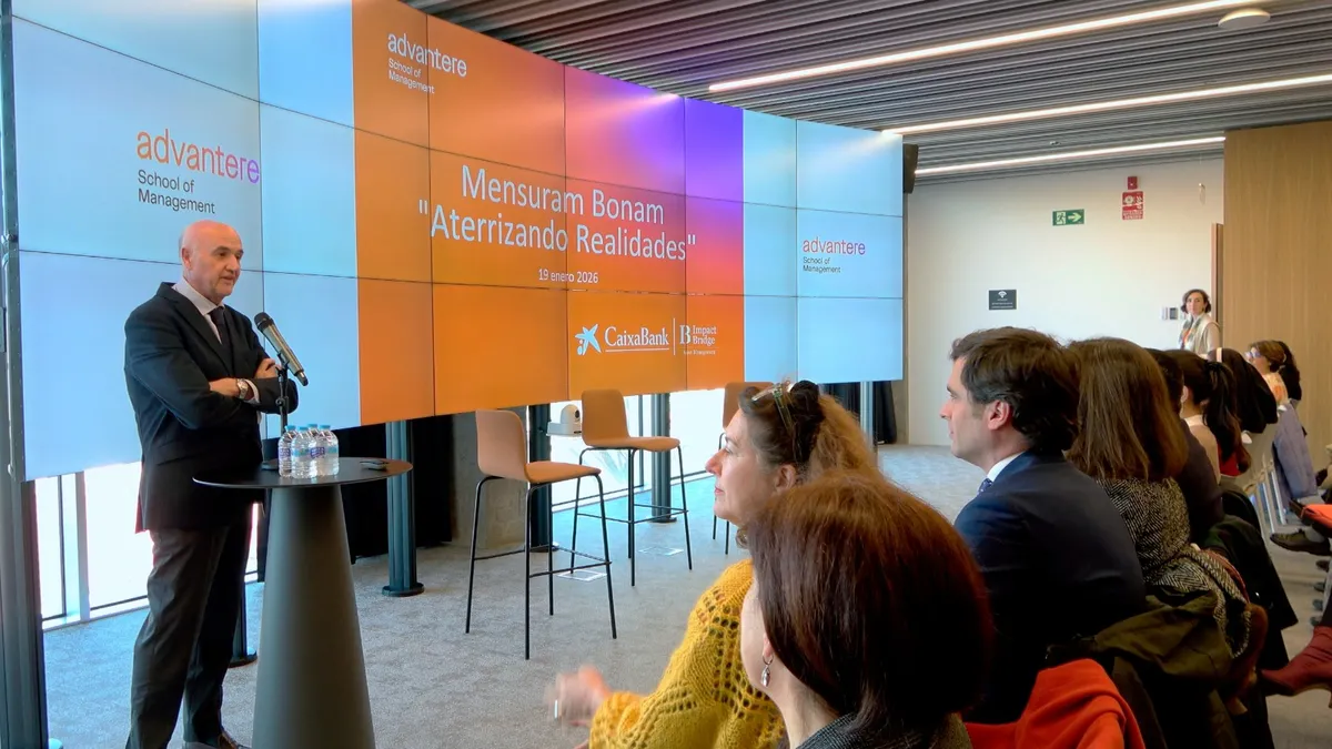 La apertura institucional corrió a cargo de Juan de la Guardia, director general de Advantere, quien destacó la importancia de integrar valores éticos y criterios de sostenibilidad en la formación de líderes y en la práctica financiera. “En Advantere colaboramos con entidades como Impact Bridge y con proyectos de impacto social como TuTecho o ModaRe para trasladar marcos éticos como Mensuram Bonam a experiencias reales de aprendizaje y formación de líderes”, señaló de la Guardia.