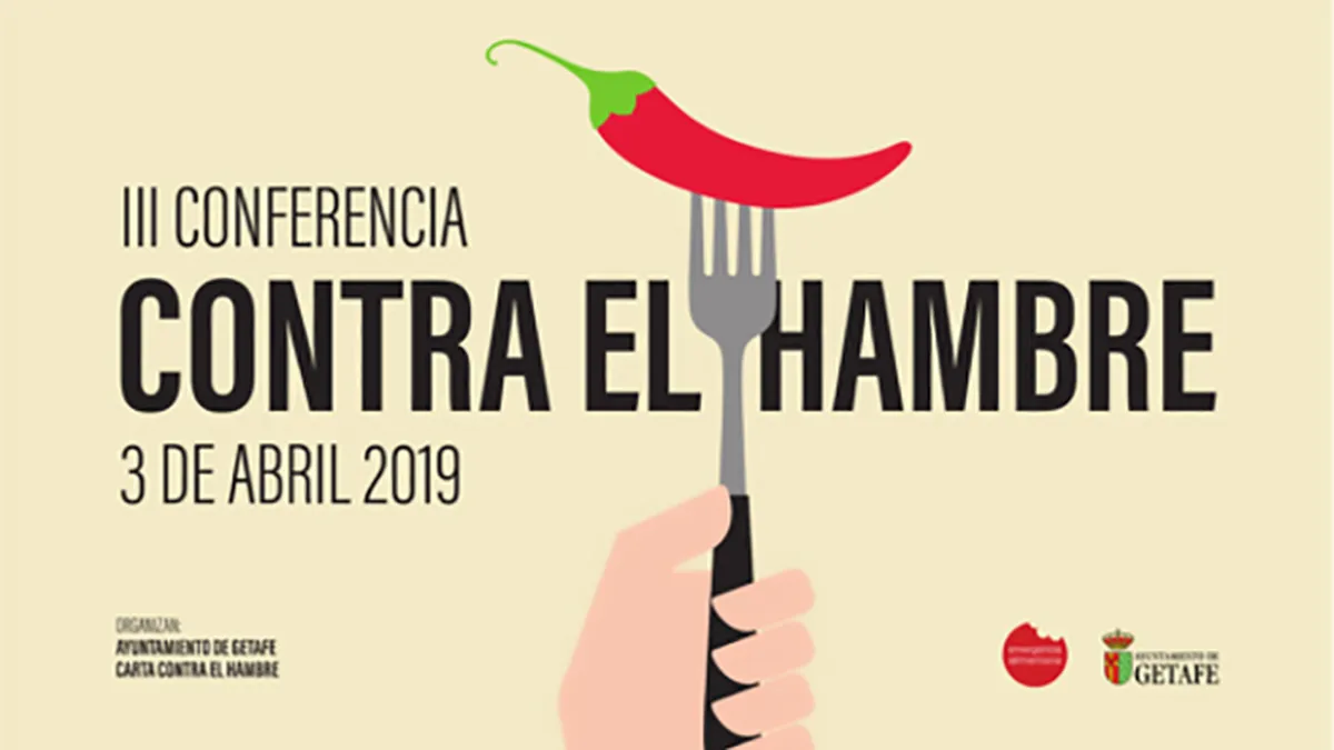 La ciudad de Getafe se dispone a acoger el próximo miércoles, 3 de abril de 2019, la III Conferencia contra el Hambre, convocada por la Plataforma de la Carta contra el Hambre, en la que van a participar, en colaboración con el Ayuntamiento de la ciudad, representantes de otros ayuntamientos de la Comunidad, así como la FAO y las Universidades Complutense, Carlos III y Juan Carlos I,