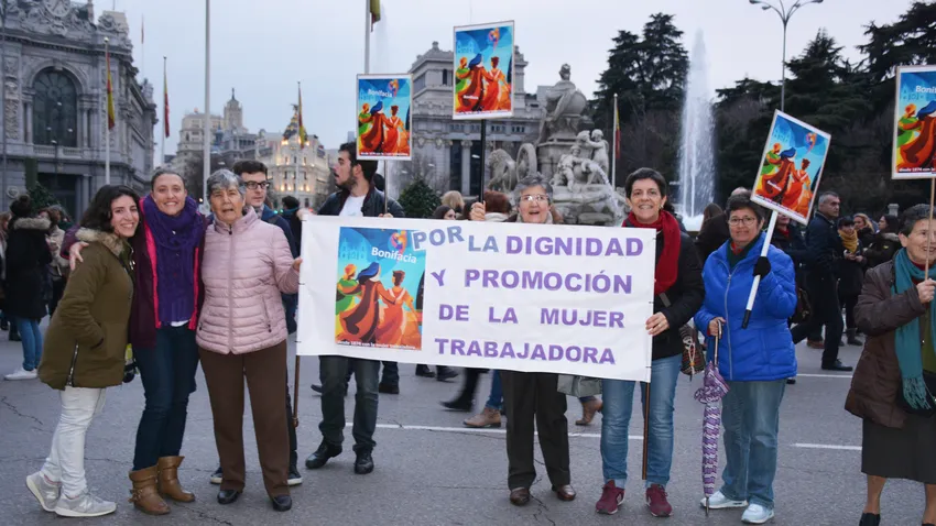 Yo pertenezco a un grupo dentro de ese colectivo, la congregación de las Siervas de San José, nacida en el siglo XIX, quizá por eso el nombre para más de uno y una suena algo antiguo, pero lo importante es que desde sus inicios se comprometió con la promoción y dignificación de las mujeres trabajadoras pobres en el contexto de la naciente revolución industrial. Nuestro proyecto nació también de la mano de una mujer pionera y profundamente creyente, Bonifacia Rodríguez. Ella impulsó el comienzo y hoy seguimos empeñadas en esa misma causa buscando junto a las mujeres trabajadoras pobres respuestas que cambien su vida; por eso para nosotras el 8M es importante.