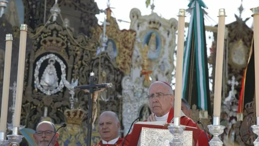 Durante la homilía de la Misa de Romeros en la aldea de El Rocío, el Obispo ha recordado que "hemos llegado como peregrinos y estamos reunidos en este Pentecostés extraordinario en el que celebramos el Centenario de la Coronación de la Virgen e iniciando el Jubileo concedido por el Papa Francisco".