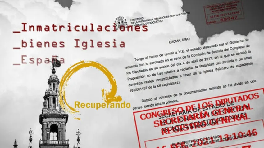 Recuperando considera además "imprescindible" que, por el mismo principio de transparencia, se conozca la totalidad de bienes inmatriculados por la Iglesia Católica mediante el denominado certificado administrativo eclesiástico desde 1946. Para ello, ha reclamado que el Gobierno central y los gobiernos autonómicos "recaben dicha información del Colegio de Registradores de la Propiedad, con un nivel de detalle que permita la identificación y verificación de cada bien".