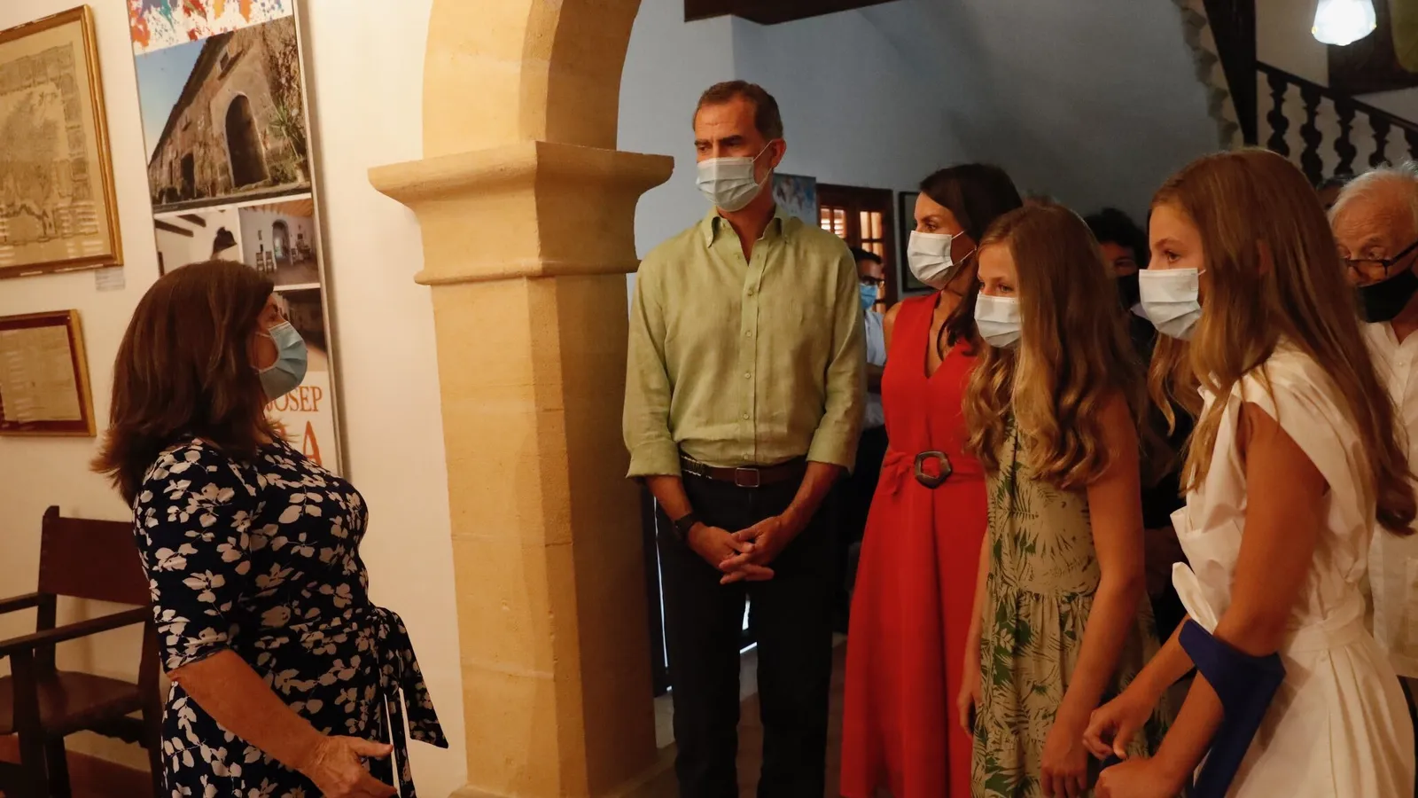 Entre vítores, vivas a España y a la monarquía por parte de varios grupos de personas que les han dado la bienvenida (algo más alejado había otro grupo que profería gritos en contra) han accedido a la casa natal de fray Junípero Serra, que conserva las estancias de lo que fue la vivienda familiar y contiene una serie de utensilios y elementos que evocan el ambiente en el que nació y creció.