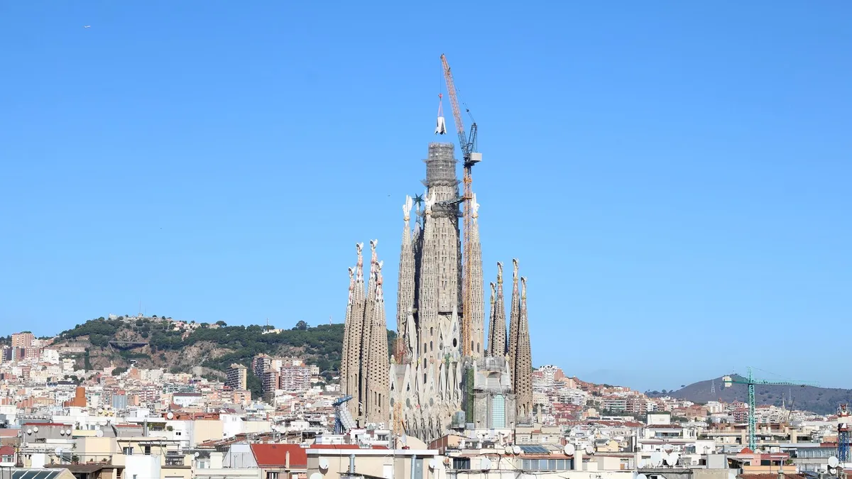 La Sagrada Familia de Barcelona ya cuenta con los cuatro brazos horizontales de la cruz de la torre de Jesucristo instalados, después de la colocación del cuarto de ellos este miércoles.