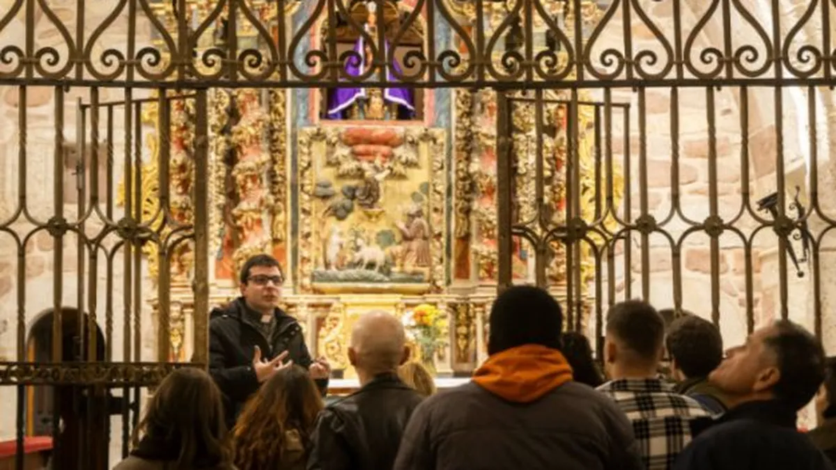 Emilio, que también se ocupa del santuario Virgen de la Hoz, en Ventosa, les mostró su labor de mantenimiento de la ermita. Los viajeros, se mostraron asombrados por la tarea que lleva a cabo el sacerdote.