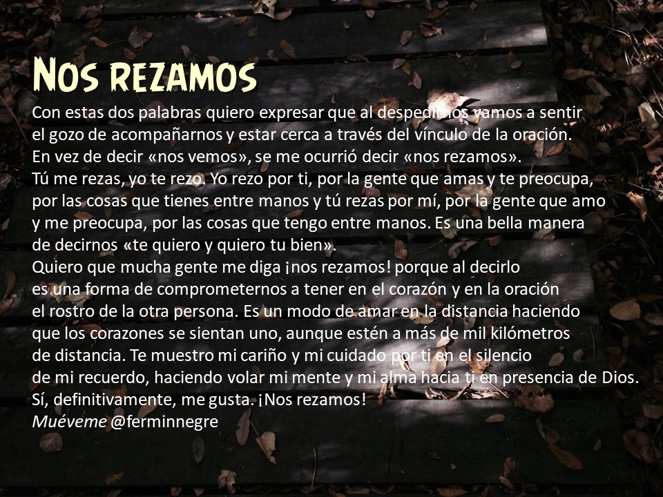 Al releerlo, siempre me parecen nuevos y los uso con frecuencia en mis actividades pastorales o, simplemente los recomiendo o presto a gente que de otra manera no lo leería. En fin, no solo soy "fan destacada" de Fermín en las redes, me he convertido en su seguidora en este apostolado diario, adaptándolo al modo de proceder mío y propio, ignaciano casi al 100×100, porque su modo de proceder y el mío pretenden ser el mismo: el de Jesús de Nazaret... Después de contarte mi recorrido y fundamento como seguidora suya, a ver si soy capaz de proporcionarte algunas preguntas. Se me ocurren algunas: ¿Qué te impulsó a publicar en las redes, hasta dos veces al día? ¿Y qué importancia tiene para Fermín Negre los seguidores en las redes…, qué le aporta a su trabajo de apóstol? No es tan importante el número de seguidores, sino el alcance de lo que publicas: ¿A cuánta gente llega tu reflexión, tu frase con imagen, tu oración compartida?
