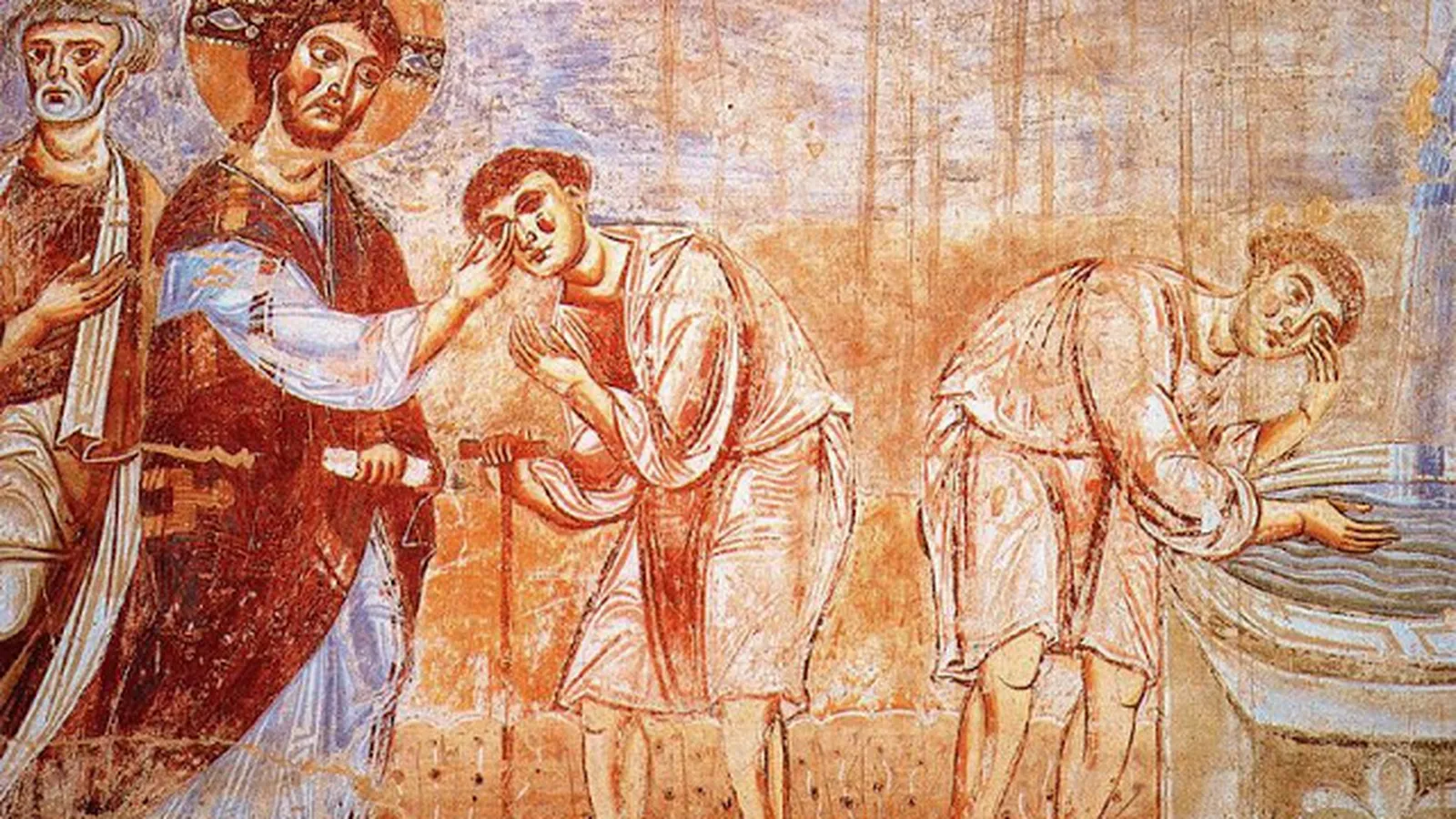 Jesús escupe en tierra, hace barro y unge los ojos del ciego. El gesto es profundamente simbólico. Recuerda el pasaje del Génesis, cuando Dios modeló al hombre con el polvo de la tierra y le infundió el aliento de vida. Aquí Jesús no solo cura, sino que recrea. El ciego no recibe únicamente visión física, sino que es introducido en una nueva manera de existir. La luz no es un añadido externo, sino una nueva ontología, una nueva forma de vivir.