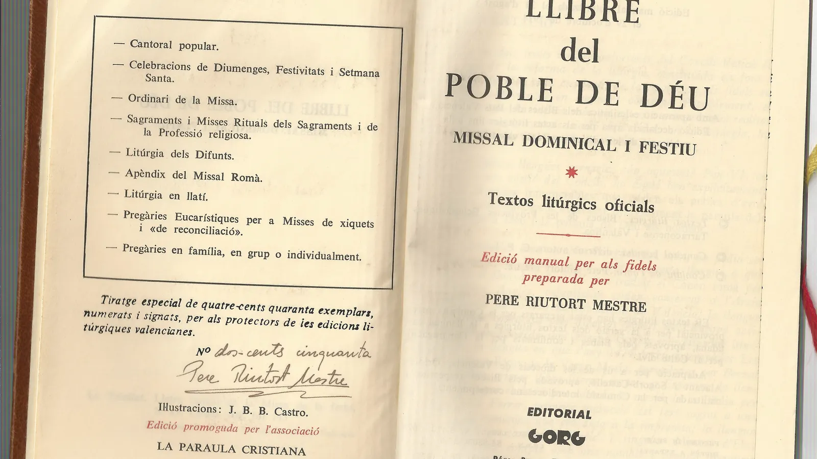 El 22 de diciembre de 1964 (continuaba la carta de Vicent Miquel), “entregamos 20.000 firmas solicitando la introducción de nuestra lengua, al Sr. Arzobispo”. Entre los 20.000 firmantes que “siguiendo las directrices del Concilio Vaticano II”, pedían “el uso de la lengua en los actos religiosos”, había Robert Moròder, Joaquim Maldonado, Martí Domínguez, Vicent Ventura, Vicent Peset Llorca, Raimon, Joaquim Rodrigo, Felip Mateu i Llopis, Manuel Broseta, Nicolau Primitiu, Joan Segura de Lago, Francesc Soriano Bueso, Francesc Burguera, Jordi Valor, Joan Valls, Enric Valor, Joaquim Michavila, Josep Iborra, Santiago Bru i Vidal, Josep Lluís Bausset, Josep Ernest Martínez Ferrando, Lluís Guarner, Emili Beüt, Maria Beneyto, Josep Ferrer Camarena, Vicent Aguilera Cerni, Josep Vicent Mateo, Andreu Alfaro, Matilde Salvador, Vicent Garcés Queralt, Agustí Escardino, Amand Garcia, Miquel Tarradell, Joan Reglà, Manuel Sanchis Guarner i també l’Ateneu Mercantil de València, el Ateneu del Grau, la Associació els Lluïsos de Vila-real, el Centre Excursionista de Castelló, los Carmelitas Descalzos de Onda o los Franciscanos de Cocentaina.