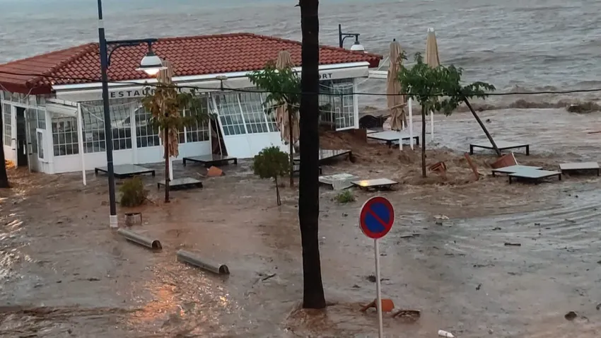 El puerto de les Cases d'Alcanar inundado
