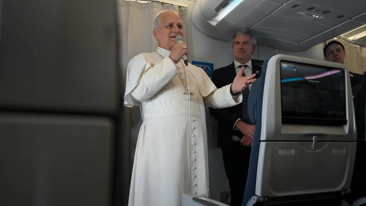 «Buenos días a todos, espero que estén bien y que estén listos para otro viaje. ¡Ya con las baterías cargadas!». El Papa León XIV ha concluido su largo viaje apostólico por África y, en el vuelo desde Malabo —última etapa en Guinea Ecuatorial— hacia Roma, responde a las preguntas de cinco de los aproximadamente 70 periodistas que le han acompañado en este viaje internacional. La guerra, las negociaciones entre EE. UU. e Irán, la cuestión migratoria, la pena de muerte y la bendición de las parejas homosexuales, entre los temas abordados por el Pontífice durante la entrevista, precedida por una reflexión del Papa León sobre la experiencia que acaba de vivir en África.