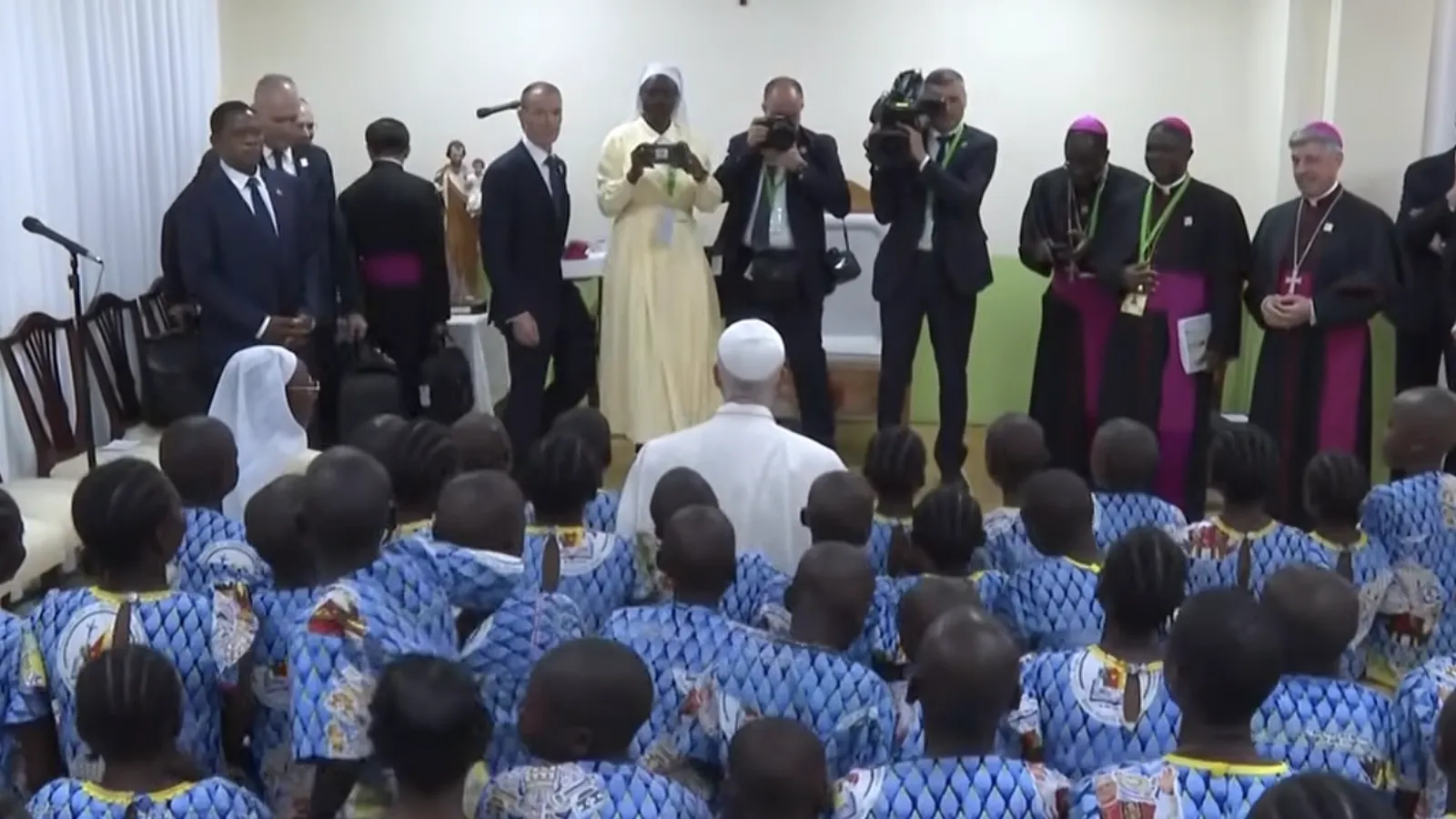 El Papa se emociona al compartir un momento con los pequeños del orfanato Ngul Zamba. "El Evangelio nos recuerda que Jesús tenía una predilección especial por los niños como ustedes, los ponía en el centro. Sepan que Él los mira hoy a cada uno de ustedes con el mismo afecto"