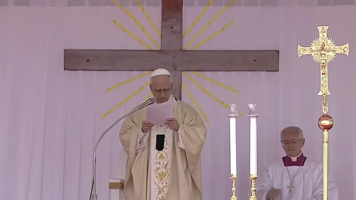 El papa León XIV llegó a la explanada de Saurimo y recorrió la zona en un coche descapotable entre los fieles, antes de regresar a la sacristía. Tras los ritos de introducción y la liturgia de la Palabra, el Papa pronunció su homilía, en la que, cual profeta, volvió a proclamar mensaje profundos y sentidos de denuncia: "Cuando la injusticia corrompe los corazones, el pan de todos se convierte en posesión de unos pocos".