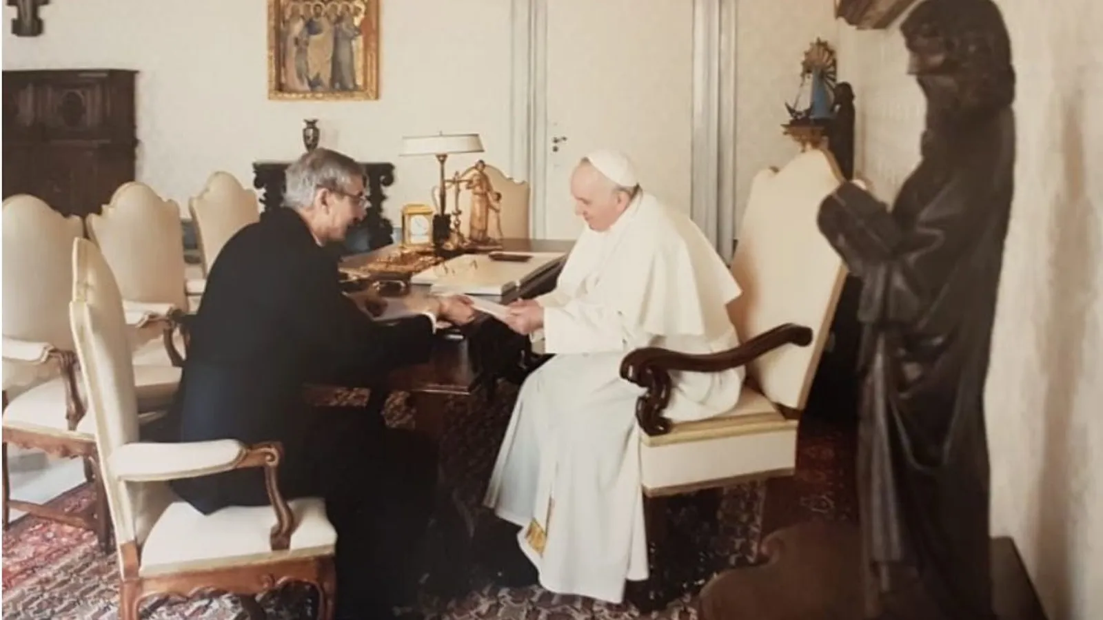 -“Tengo una estrechez del espacio intervertebral entre la cuarta y la quinta vértebra lumbar, y entre ésta y el sacro. Le cuento una anécdota: durante el chequeo físico que me hicieron al asumir el papado, me realizaron radiografías de toda la columna vertebral, que el médico del Vaticano llevó a un especialista de mucho prestigio. Al verlas, dijo: ‘Esto es muy serio. El paciente necesita un tratamiento intensivo a base de kinesiología, rehabilitación postural y gimnasia. Entiendo que estamos hablando de una persona que se encuentra en silla de ruedas’”.