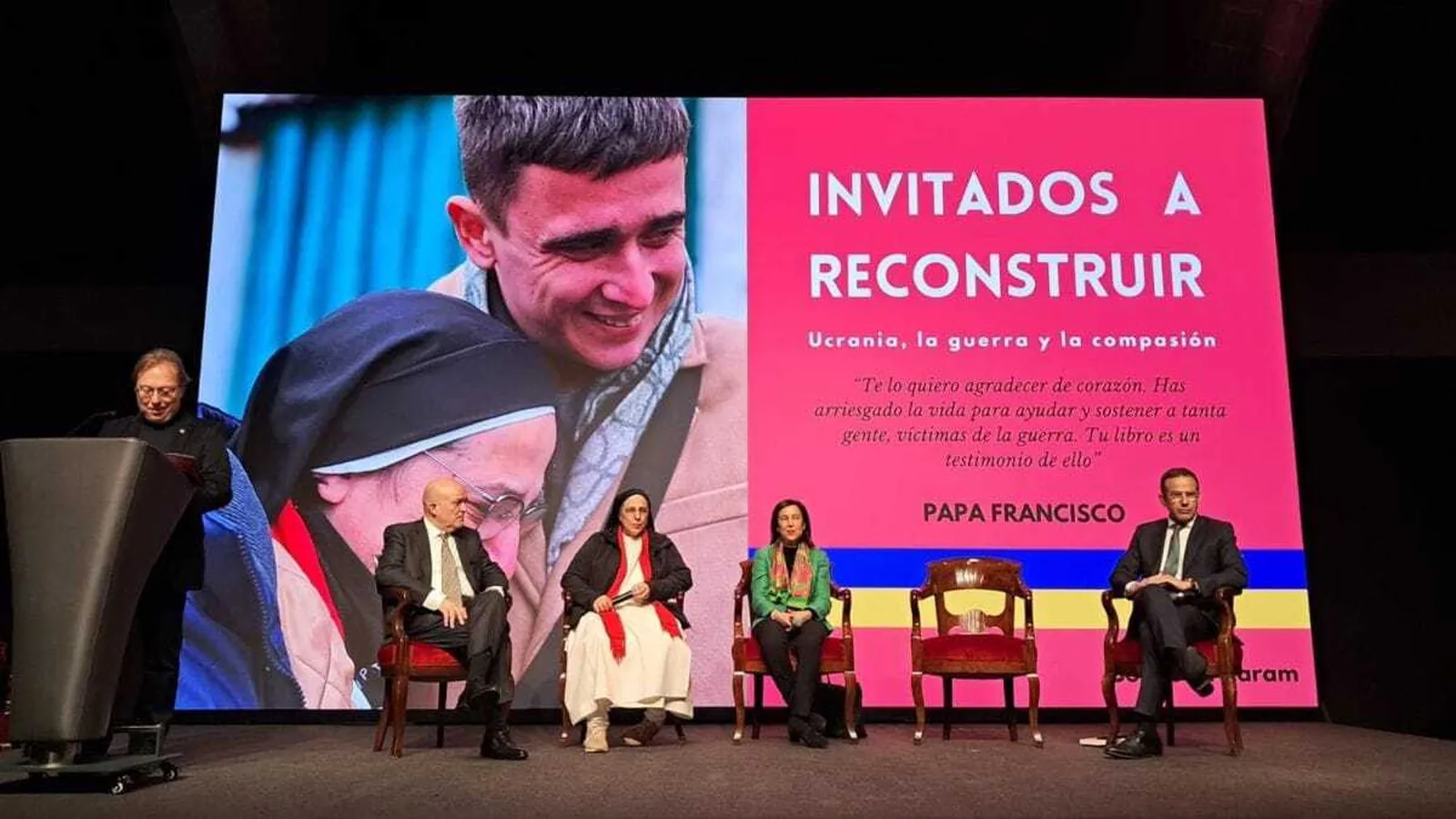 La guerra "saca lo peor de los seres humanos, pero al mismo tiempo lo mejor", y ha indicado que se ha emocionado con la lectura del libro de Caram, a quien ha querido agradecer su labor humanitaria en Ucrania