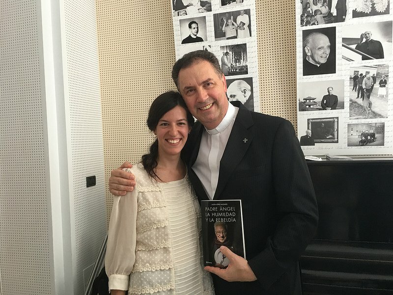 En un acto sencillo, en la Residencia San Pedro Canisio de los jesuitas de Roma, el Rector Mayor de los salesianos acompañó ayer al fundador de Mensajeros de La Paz y a la autora, Lucía Lopez Alonso, en la presentación del libro 'Padre Ángel, la humildad y la rebeldía' (Planeta).
