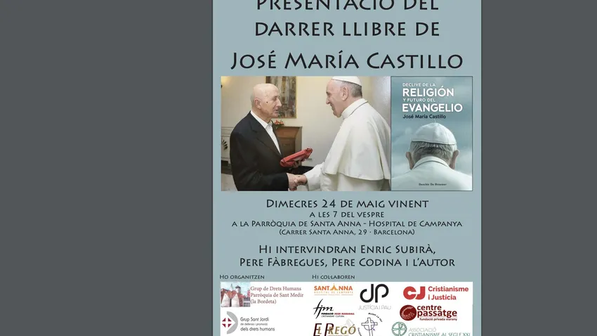 José María Castillo sigue de gira para presentar su último libro, 'Declive de la religión y futuro del Evangelio' (Desclée), y este miércoles, 24 de mayo, a las siete de la tarde, el padre de la Teología Popular ofrecerá una charla en la parroquia de Santa Anna de Barcelona (Carrer Santa Anna 29), a partir de las siete de la tarde.
