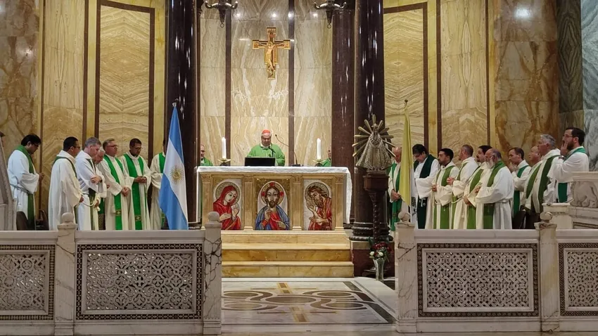 Primera misa del cardenal en la Iglesia de los argentinos de Roma