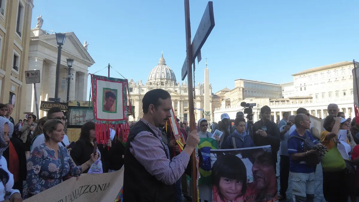 El otro gesto fue uno sobre la sinodalidad de la Iglesia y que tenía un peso muy simbólico. Desde la tumba del apóstol Pedro, la piedra donde se sostiene la Iglesia, peregrinamos juntos, en romería, todo el Pueblo de Dios alrededor del Papa, entremezclados, con todos los símbolos y colores que se ven en esas fotografías, caminando juntos hacia el aula sinodal para comenzar un proceso que para algunos tenía que ver con estar dentro del aula en discernimiento y consulta, y para muchos más era vivir el sínodo desde fuera, en todo lo que denominamos Amazonía casa común. Nuestra sensación es que no eran dos sínodos o eventos paralelos: era un solo sínodo, uno intramuros, en el aula, otro extramuros, amazonizando Roma.