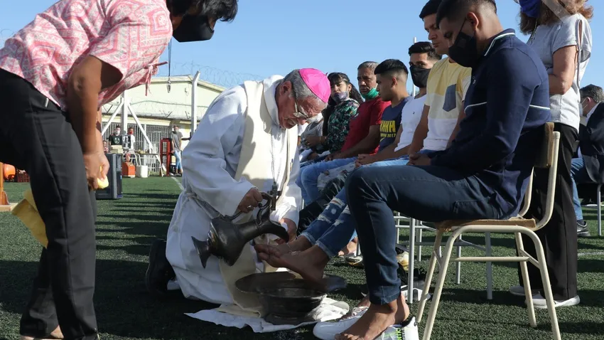 Mons. Ojea celebra el Jueves Santo lavando los pies a los presos