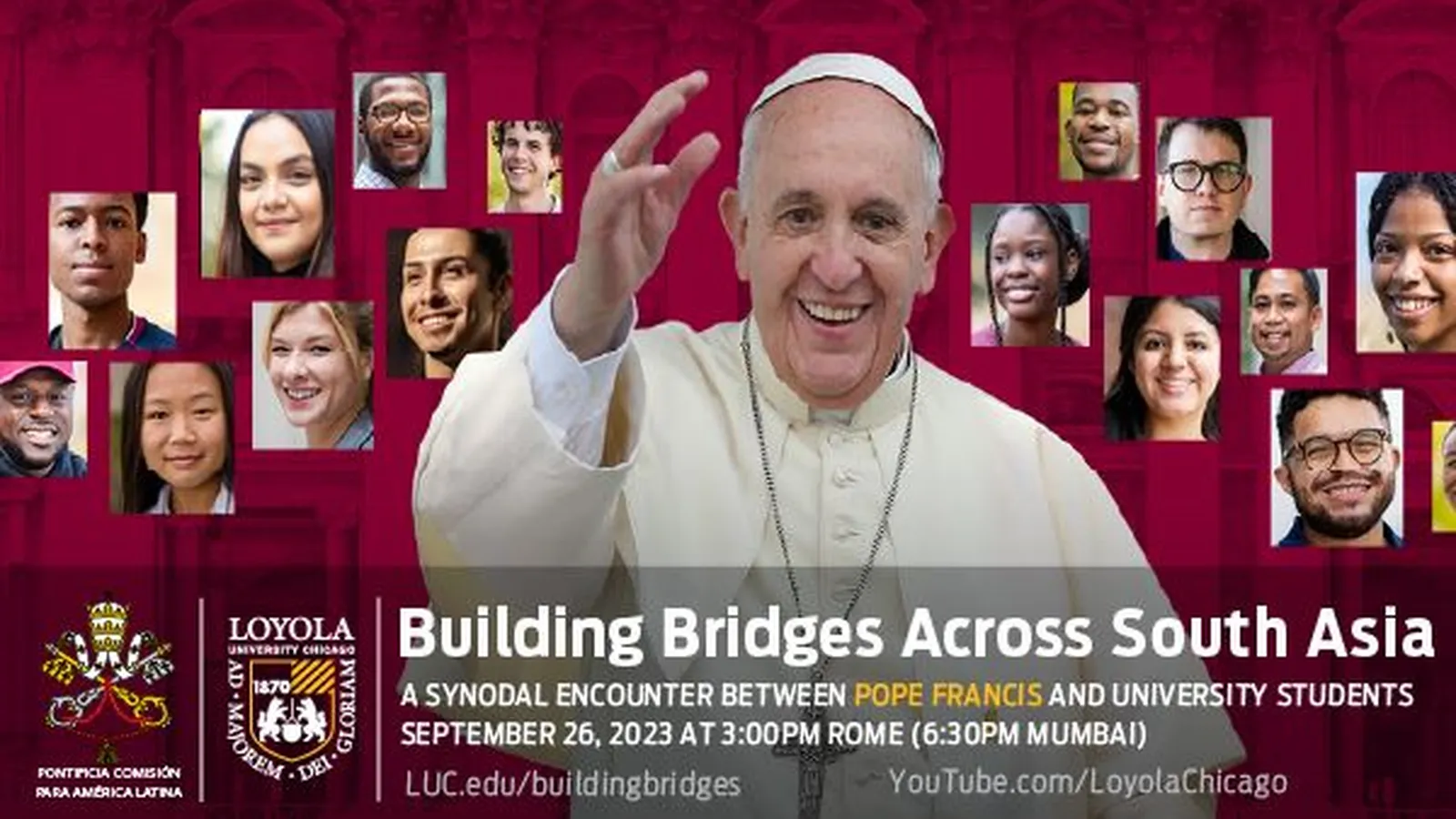 El encuentro, que se lleva a cabo vía Zoom, tendrá traducción simultánea en inglés, hindi y español, y será transmitido en directo a través del sitio web de la Iniciativa Building Bridges: www.luc.edu/buildingbridges.