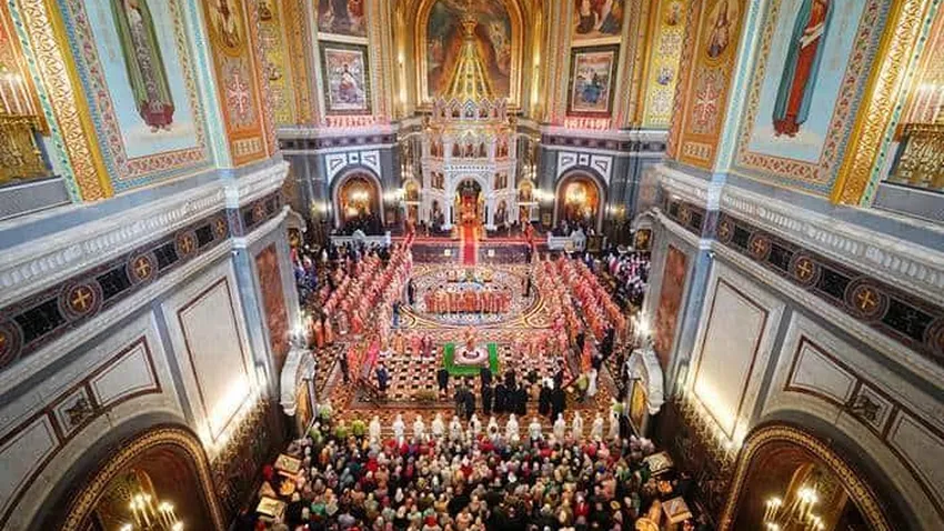 El patriarca de la Iglesia ortodoxa rusa, Kiril, ofició el domingo la misa con ocasión de la festividad de la Trinidad y se acercó a besar el icono del siglo XV, protegido por una cápsula especial frente al altar del templo.