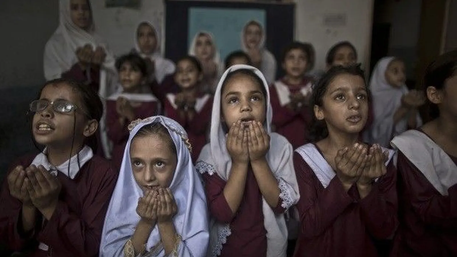Niñas cristianas pakistaníes rezando