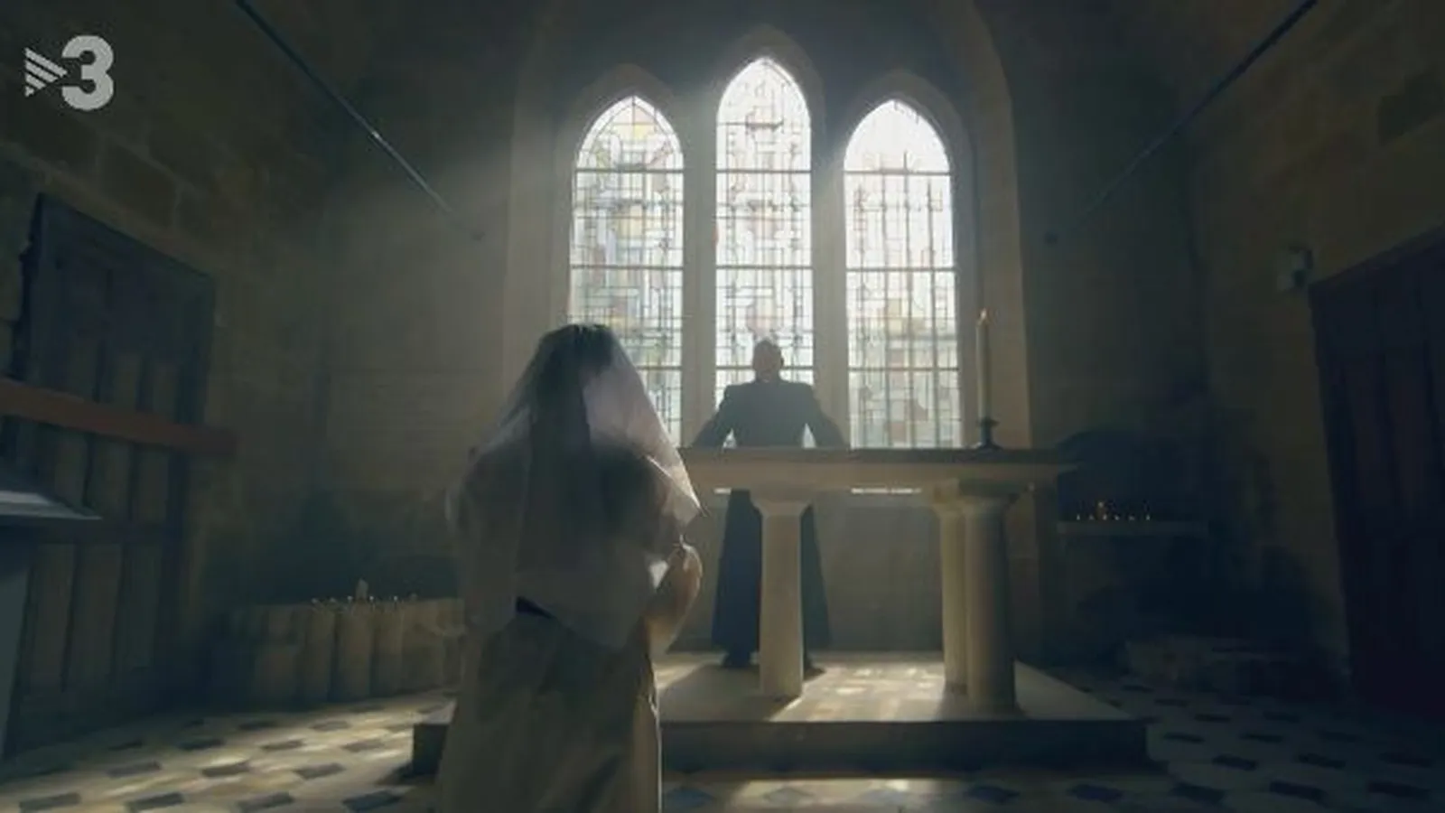 El equipo del documental 'Religiosas, las otras víctimas sexuales de la Iglesia entrevista a Constance detrás un confesionario por su seguridad