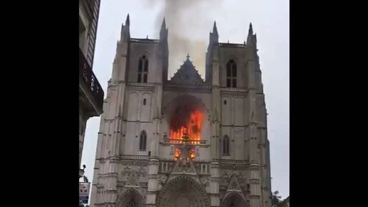 La catedral de Nantes, que ya sufrió un incendio en 1972, es un templo gótico construido en la ciudad a orillas del Loira entre principios del siglo XV y finales del XIX, en cuyo interior se guardan importantes tesoros artísticos.