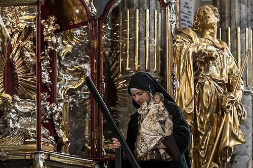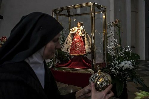 Una histórica estatuilla de cera de Jesús en su edad infantil Fieles de todo el mundo asisten a la procesión del "Santo Niño de Praga"