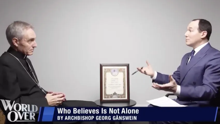 No podía hacerlo en otro sitio. El arzobispo Georg Gänswein, defenestrado por el Papa Francisco y que aguarda noticias en su refugio no deseado de Friburgo, concedió este fin de semana una entrevista a Raymond Arroyo, una de las estrellas de la 'televisión del diablo', como Bergoglio define a EWTN. Y lo hizo para, entre otras cosas, justficiar la publicación, con el cadáver de Benedicto XVI aún caliente, de su libro de memorias.
