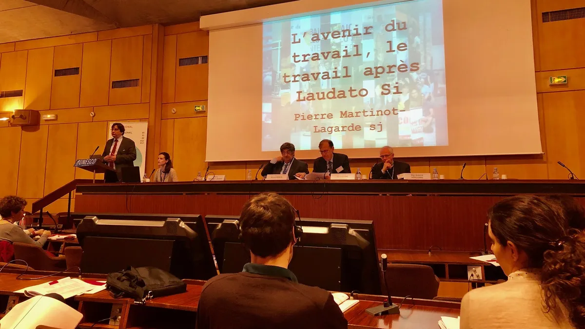 La gran sala magna de la sede de la Unesco en París, llena a rebosar de participantes en el coloquio internacional sobre 'El trabajo en una transición ecológica solidaria': más de 500 personas. Pilotado por la Organización Internacional del Trabajo (OIT) y por el Centro de investigación y acción social (CERAS) de los jesuitas de Francia. Como colofón a un trabajo conjunto desarrollado durante los tres últimos años, impulsado por la encíclica 'Laudato si' del Papa Francisco.