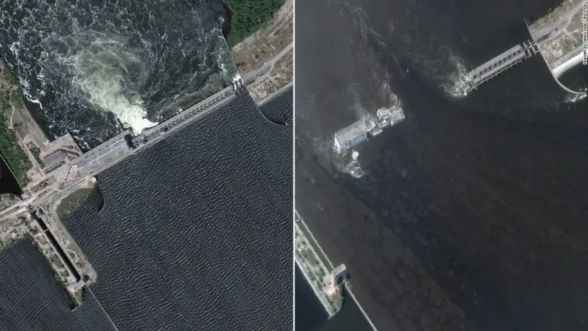 La represa de la central hidroeléctrica fue volada el martes 6 de junio a las 2.50. Esto provocó la inundación de las áreas, principalmente del Óblast de Jerson junto con su capital. Al mismo tiempo, cientos de miles de personas perdieron el acceso al agua potable, que quedó almacenada en el embalse creado por la represa.