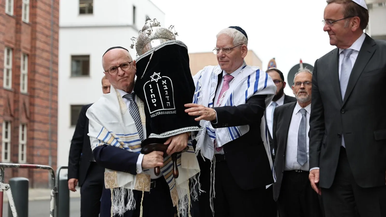 Pistorius y Schuster participaron junto con varios rabinos y soldados de fe judía en la escritura simbólica de las últimas letras de un rollo de la torá, que después fue transportado en una procesión solemne hasta la sede del rabinato militar.