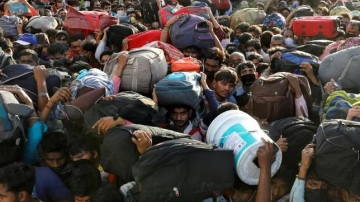 Las frágiles condiciones de los pobres están provocando una crisis humanitaria. Un país paralizado ha dejado a millones de personas sin trabajo en las grandes ciudades. En su mayor parte se trata de migrantes económicos que se han transferido desde otras zonas, mayormente rurales, en busca de mejores condiciones de vida. Lo poco que ganan lo envían a las familias, que han quedado en sus pueblos de origen. Es el caso de Goutam Lal Meena, que en Gujarat ganaba 400 rupias por día (4,8 euros). Como ha perdido el trabajo y el transporte se ha interrumpido en todo el territorio, tuvo que volver a pie hasta su casa, recorriendo casi 300 km. Las redes sociales, los canales de televisión y los periódicos están repletos de historias de desesperación, como la de un grupo de operarios textiles que recorrieron 500 km, desde Rahtak (en Haryana) hasta Kanpur (en Uttar Pradesh).
