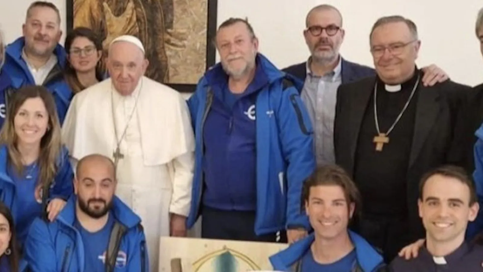 Mattia Ferrari (abajo a la derecha) y miembros de la MSH con el papa Francisco | Twitter