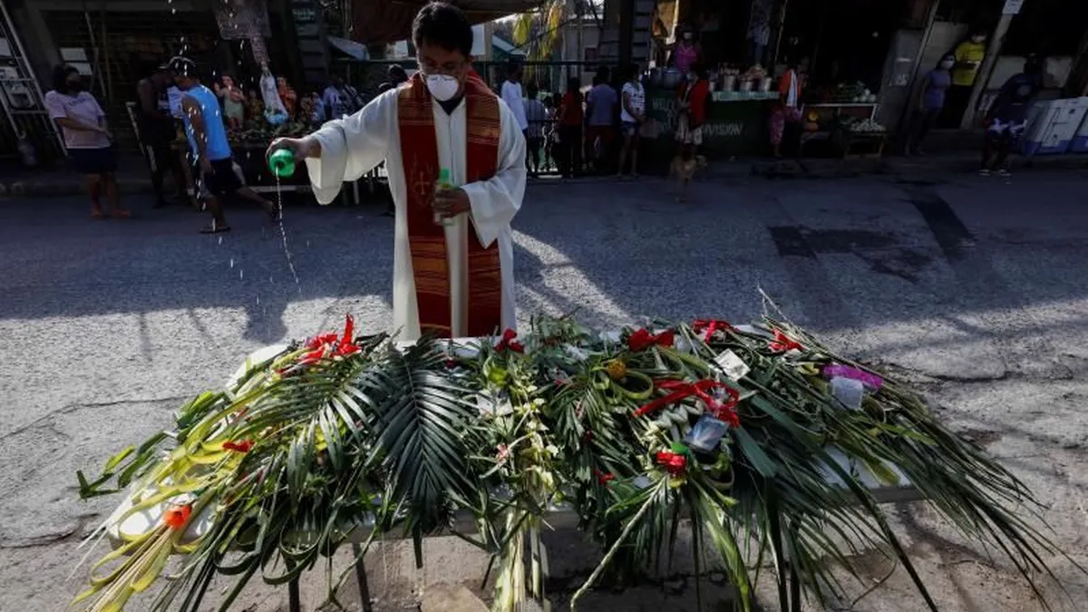 Sin embargo, en algunos barrios de Manila, donde no todo el mundo tiene acceso a internet, algunos sacerdotes se acercaron a sus comunidades para bendecirlos con hojas de palma, como hizo en la barriada Bagong Silangan el párroco Gilbert Villena.