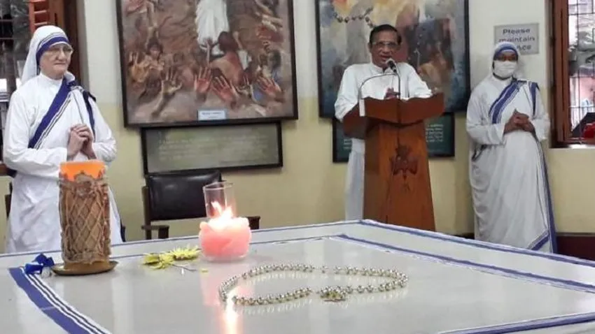 El padre Dimicic Gomes, vicario general de la arquidiócesis de Calcuta (India), celebró esta mañana una misa en la capilla dde la Casa madre de las Misioneras de la Caridad en Calcuta, celebrando los 110 años del nacimiento de su fundadora, Madre Teresa de Calcuta.