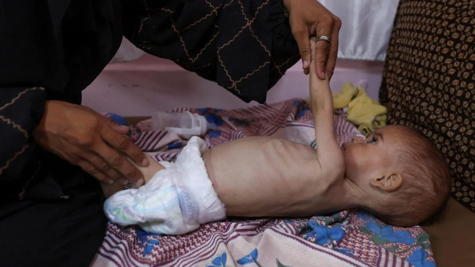 Niña palestina desnutrida recibe tratamiento en el Hospital Nasser de Khan Younis, en el sur de la Franja de Gaza