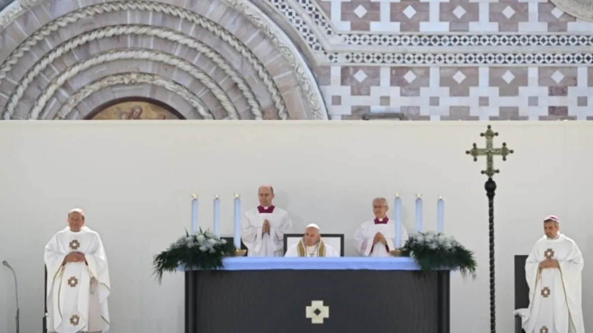 Mientras los obispos realizan la procesión de entrada, el Papa llega a la sede del altar en silla de ruedas y permanece sentado. Tras escuchar el pasaje del evangelio de Lucas sobre los invitados. “Amigo, sube más arriba”, el Papa pronuncia la homilía.