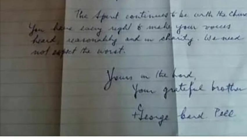 La carta, fechada el 1 de agosto y distribuida por Twitter (en una cuenta de los Partidarios del Cardenal Pell), tiene dos páginas, y está escrita por su puño y letra. Sin embargo, su publicación viola las reglas que prohíben a los presos publicar en redes sociales o usar el internet, o pedir a otros que lo hagan en su nombre. Al poco de conocerse la noticia, esta cuenta borró este tweet.