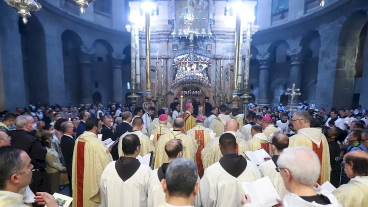Hoy aquí, una vez más, ante este Sepulcro vacío, renovamos - para nosotros y para toda nuestra Iglesia - el deseo de apostar por el amor de Jesús, de no temer a la muerte y sus ataduras, sino de estar aquí, en Tierra Santa y en el mundo, generadores de vida, de amor, de perdón y de esperanza.
