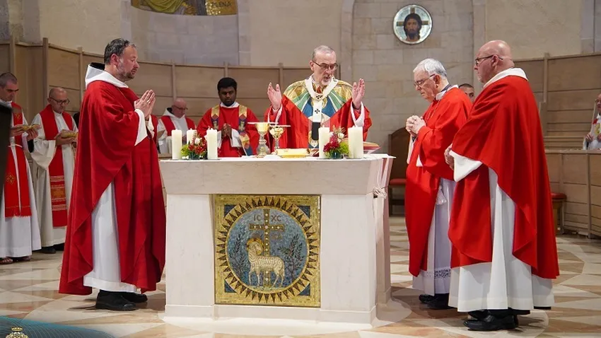 El patriarca latino de Jerusalén celebró la misa de la solemnidad de Pentecostés en la Abadía Benedictina de la Dormición de María, cerca del Cenáculo