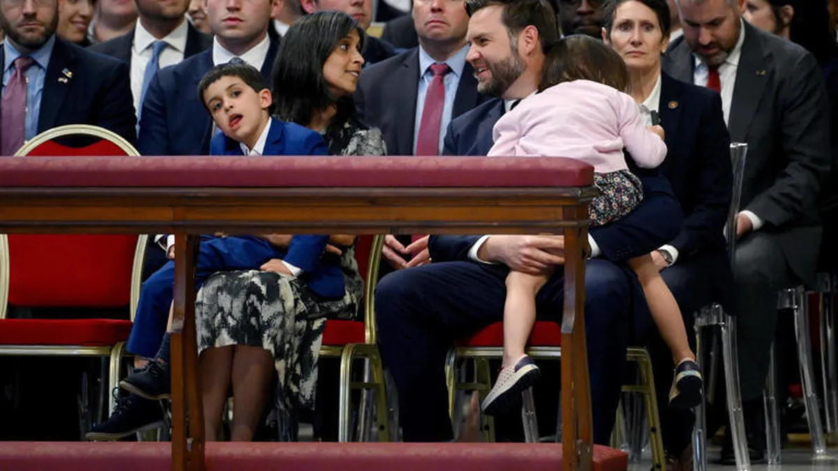 Vance acudió al templo vaticano acompañado por su esposa, Usha, y sus tres hijos, y se sentaron en primer fila ante el altar papal.