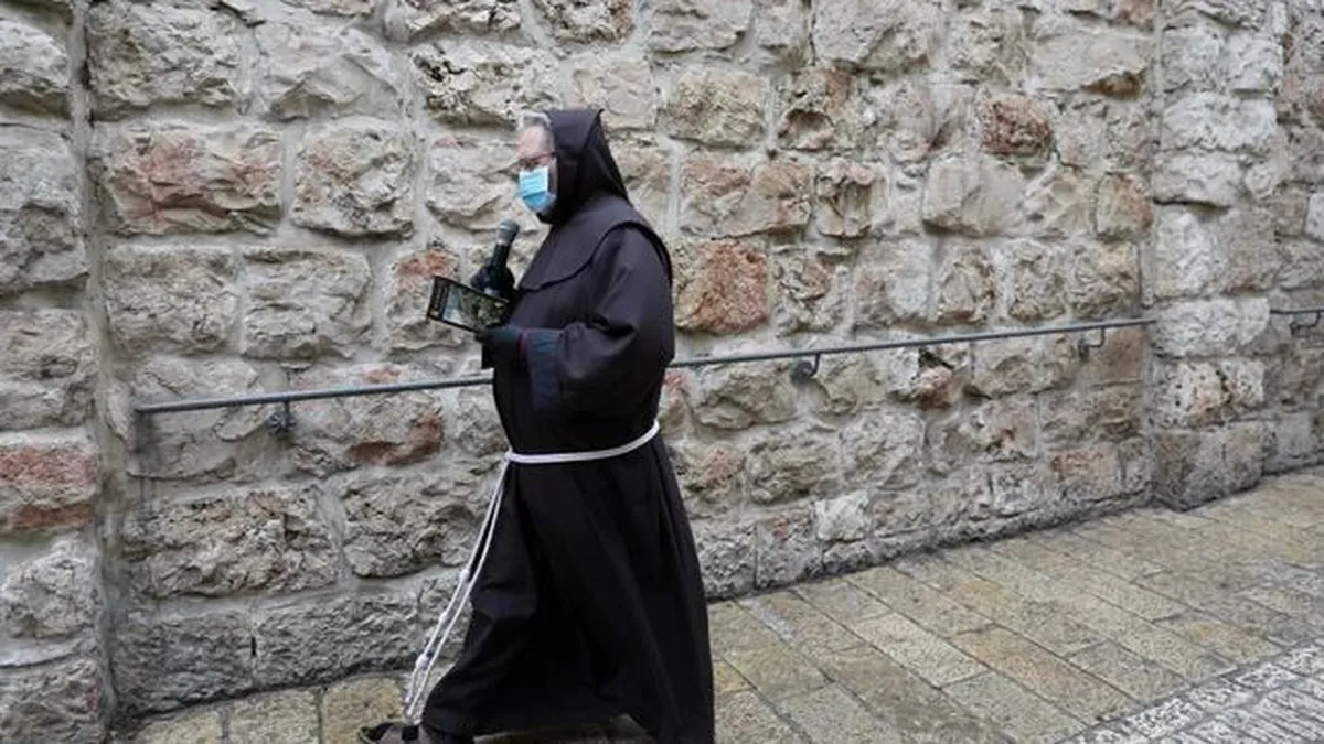 Cuatro franciscanos recorrieron hoy el Vía Crucis de Jerusalén durante un atípico Viernes Santo. Sin los miles de peregrinos que cada año siguen los pasos del Calvario de Jesús y con las oraciones interrumpidas por el alto número de policías y periodistas que impedían cumplir las restricciones por el coronavirus.