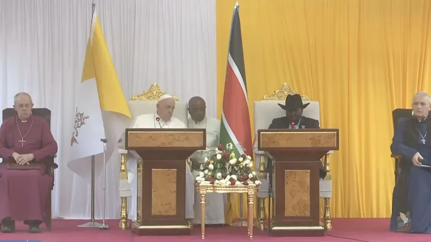 Un viaje a tres bandas. Ecuménico, mundial, global. Tres líderes religiosos, máximos representantes de la Iglesia católica (Bergoglio), la Comunión Anglicana (Justin Welby) y la Iglesia Presbiteriana Escocesa (Iain Greenshields), unidos para buscar la paz en Sudán del Sur. Para 'forzar' la paz.