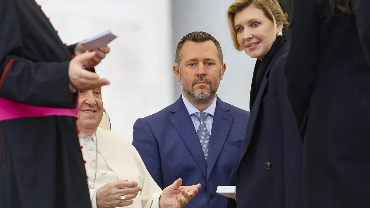 Olena Zelenska estuvo en la Plaza de San Pedro acompañada de las primeras damas de Lituania, Serbia y Armenia, en primera fila, y a su término también pudieron intercambiar algunas palabras con el pontífice